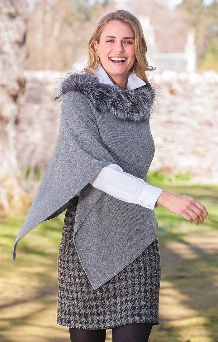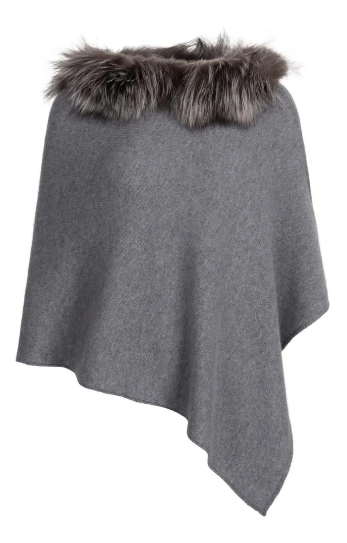 This stunning fox fur trimmed poncho is a real winter wardrobe extravagance! Nothing speaks of sheer indulgence like pure cashmere, and this elegant side-split poncho is trimmed with ethically-sourced fox fur for that extra touch of organic warmth. It is versatile enough to be dressed up or down depending on the occasion and is eye catching without being ostentatious.