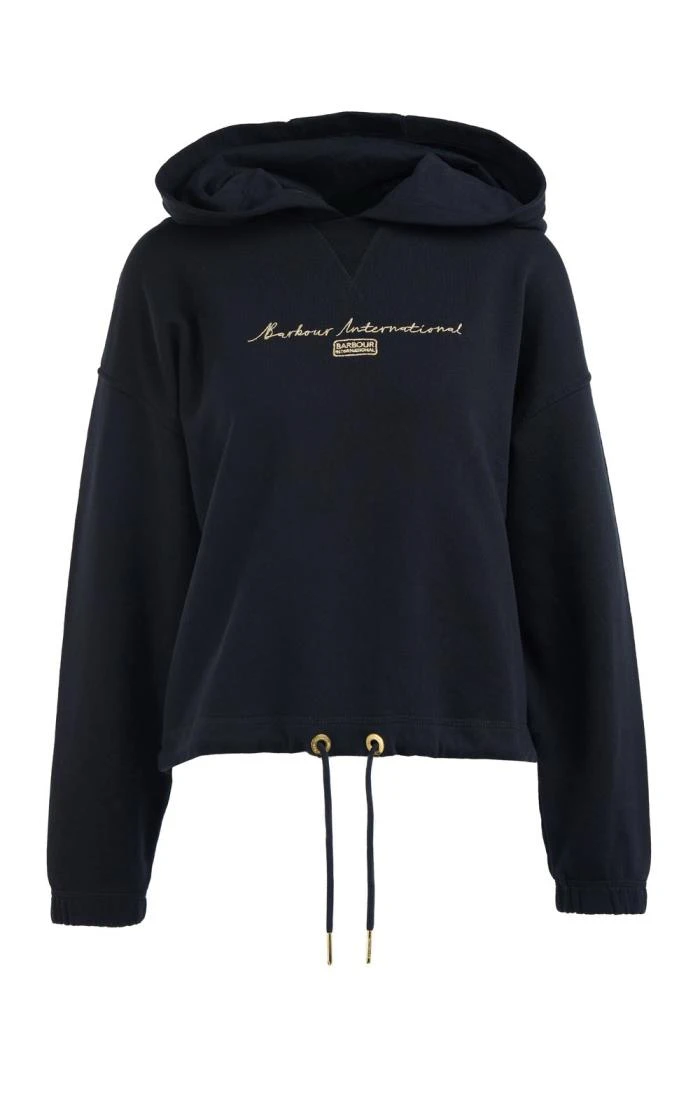 Youthful and dynamic with its trendy hoodie shape, drawstring hem and Barbour International embroidery to the chest, the 100% cotton Alpine overlayer will spark life into your leisurewear collection. Finished with rib detailing to the neckline and a gold-tipped drawcord, the logo badge to the back of the neck is your hallmark of quality British textile heritage.