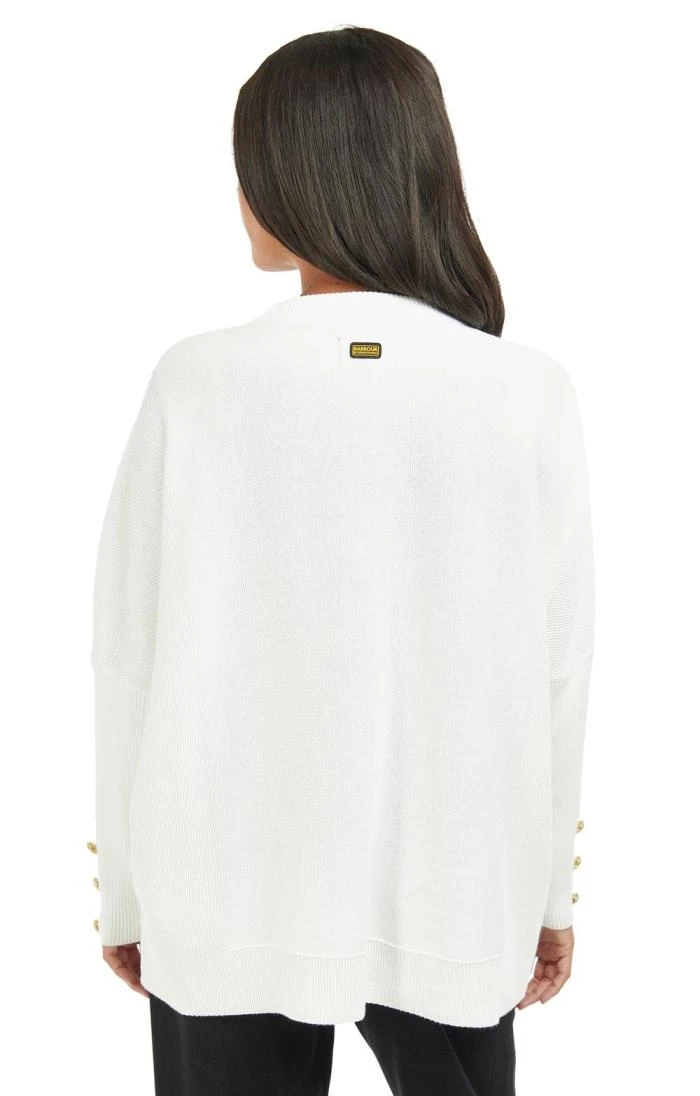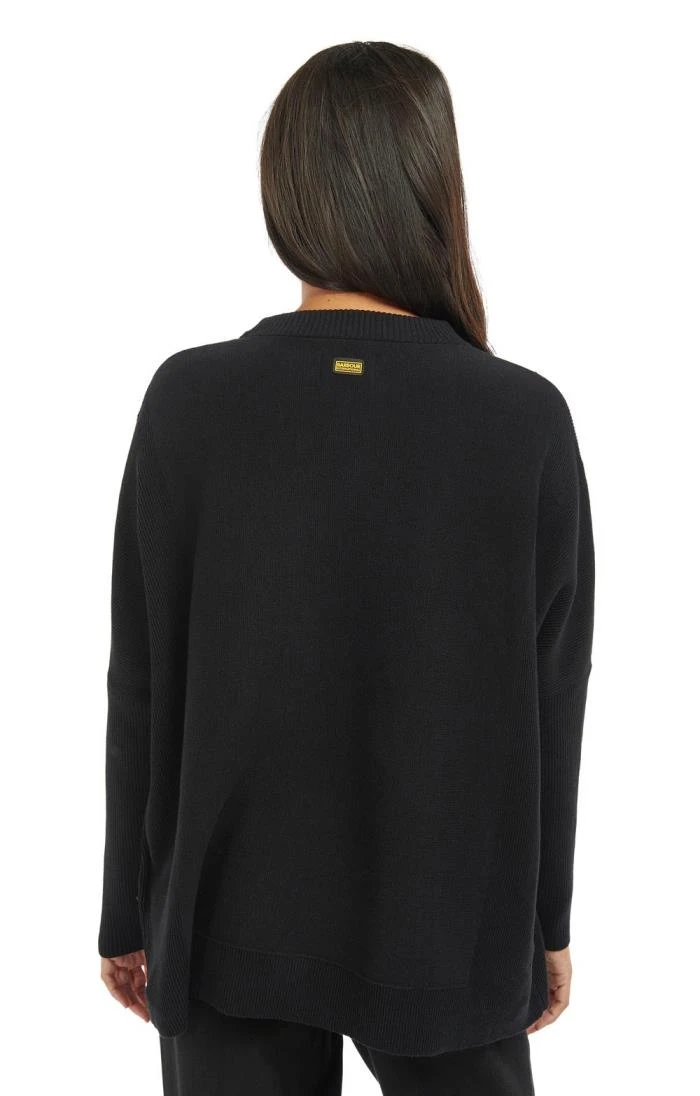 With its exaggerated dropped shoulders and loose-fit cut, this ladies Barbour International Kubican Sweater is just what your weekend wardrobe ordered. Showcasing a relaxed style with ribbed side panels, this oversized jumper boasts a comfortable crew neck collar and decorative branded buttons on the cuffs.