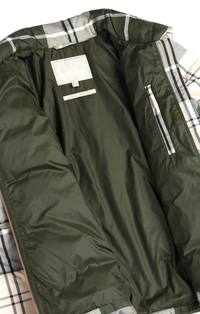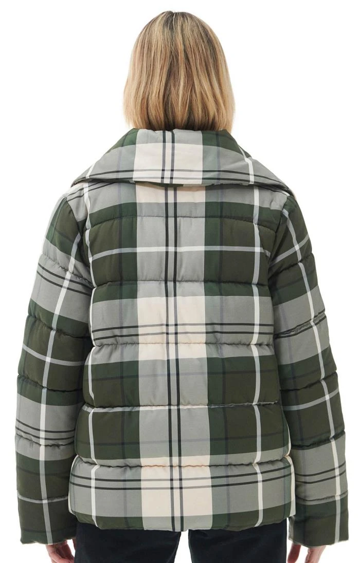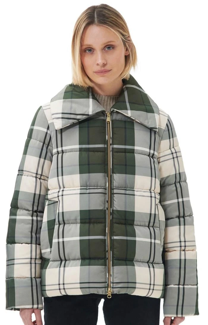 Sporting a bold, oversized print with a contemporary silhouette, this ladies Barbour tartan Germain quilted jacket will have heads turning wherever you go this winter. From the chunky shirt-style collar and welted hand warmer pockets to the exposed two-way zip with the branded metal pull, this eye-catching style really stands out.