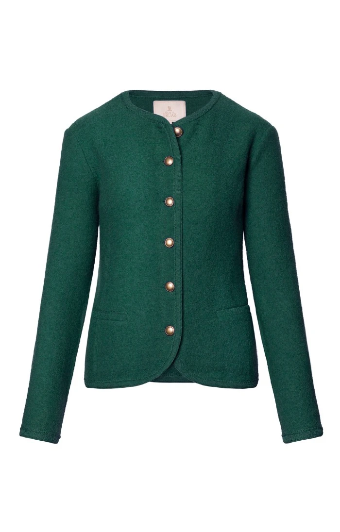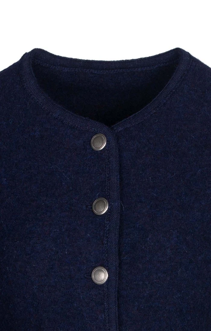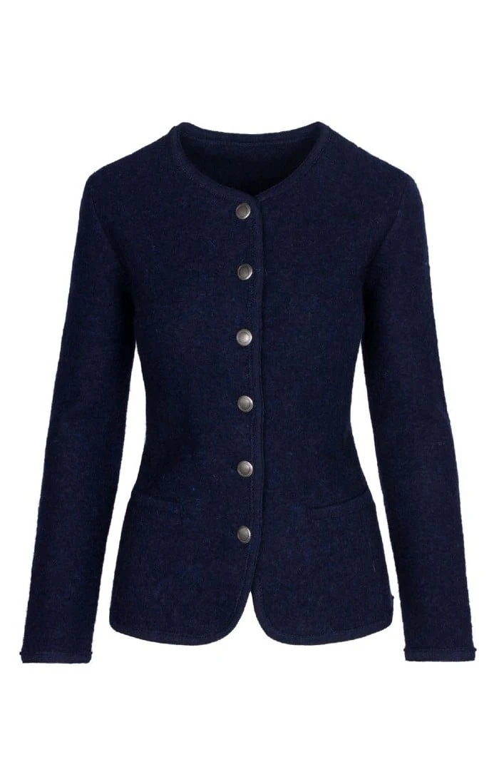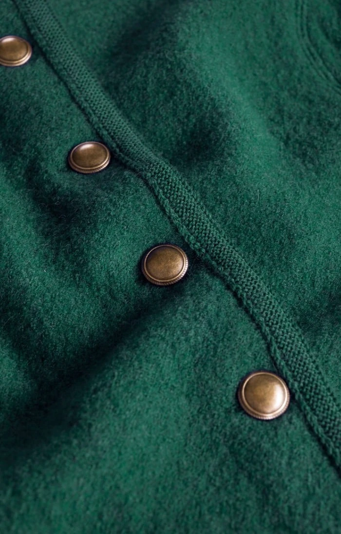This boiled wool jacket features a cleanly defined silhouette with a simple crew neck design that only adds to its refined appearance.
