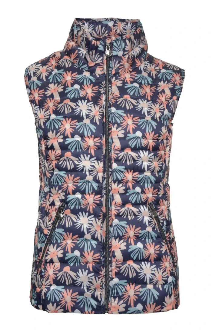 Add comfort and warmth to your outdoor activities with this attractive floral ladies Harper gilet. With a classic baffle quilt design and a stand-up funnel neck collar to protect against harsh winds, this sleeveless bodywarmer is both functional and feminine.
