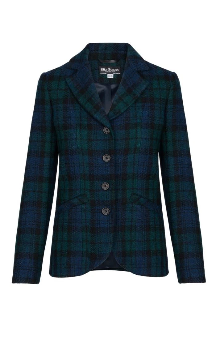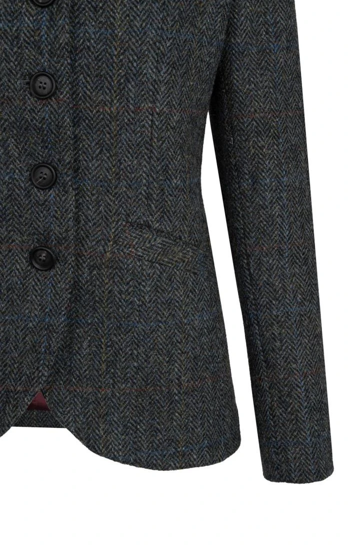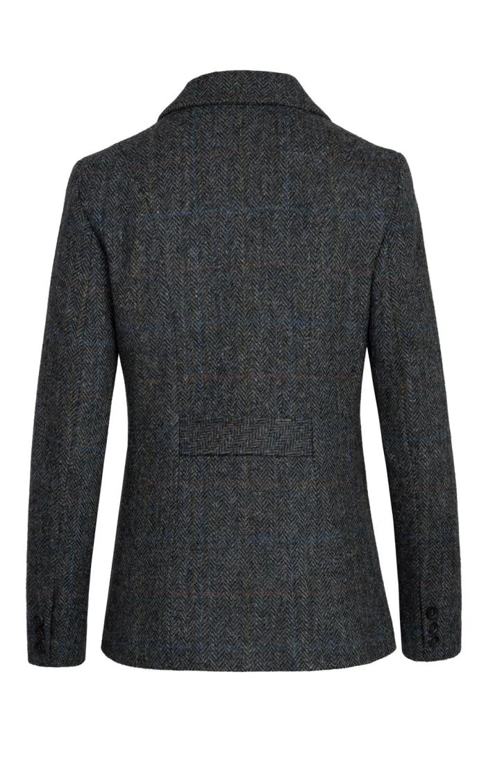 The Harris Tweed Sandy jacket tempers contemporary sensibilities with traditional craftsmanship. Beautifully sculpted for a flattering fit, it’s constructed from highest quality handmade Harris Tweed and features horn-effect buttons, a rear belt, slanted side pockets and two-button cuffs.
