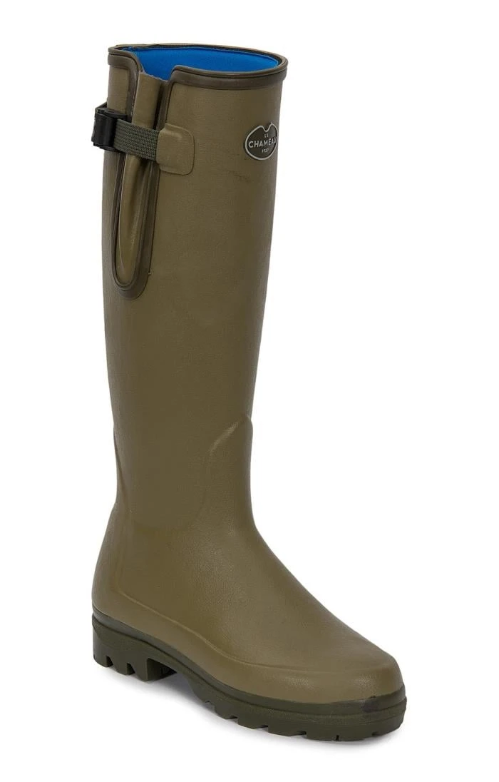 Le Chameau’s Gusset Neoprene lined wellie is ready for anything the countryside can throw at it. Designed with comfort in mind, it features a dual-density Cross sole that provides grip on muddy ground and absorbs shocks on rocky terrain. Inside, it has a 3mm Neoprene lining which insulates the foot in cold weather, and the adjustable waterproof gusset with snap-fastening buckle ensures a snug and comfortable fit.