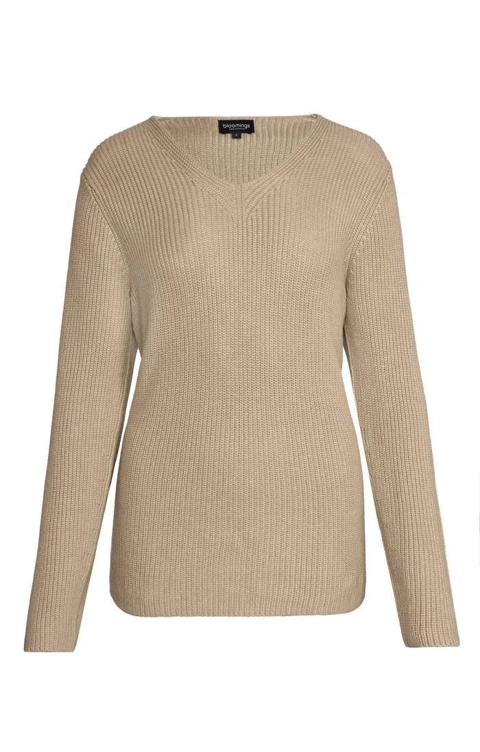Layer up during colder weather with this flattering ladies ribbed cotton V neck jumper. Featuring an attractive vertical stitch that creates a feminine silhouette and long set-in sleeves with in a matching knit, this 100% cotton sweater is breathable and perfect for layering.