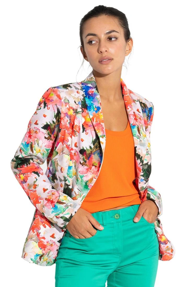 Prepare to gather no end of compliments in the fabulous floral Silva jacket with its dazzling impressionistic splashes and lightweight wear. Fast-tracking your fashion credentials through its innovative round lapel styling and impactful original print, let the colours do the talking over neutrals or create a contemporary clash with bright cotton crops and a vivid cotton rib tee.