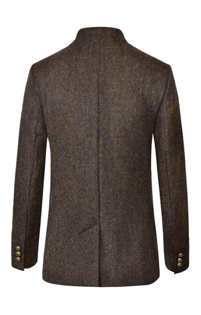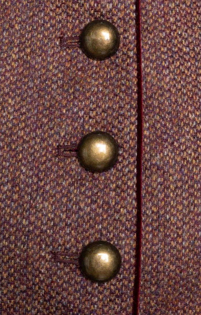 Flowing gracefully downward from a smart stand collar and featuring gold-effect buttons, three button cuffs and piping at collar and placket created by a centre front velvet lining, our British tweed Edinburgh jacket really stands out from the crowd. Neatly tailored without ever being severe, it’s an evocative piece that will make itself instantly at home at any number of social events and occasions.